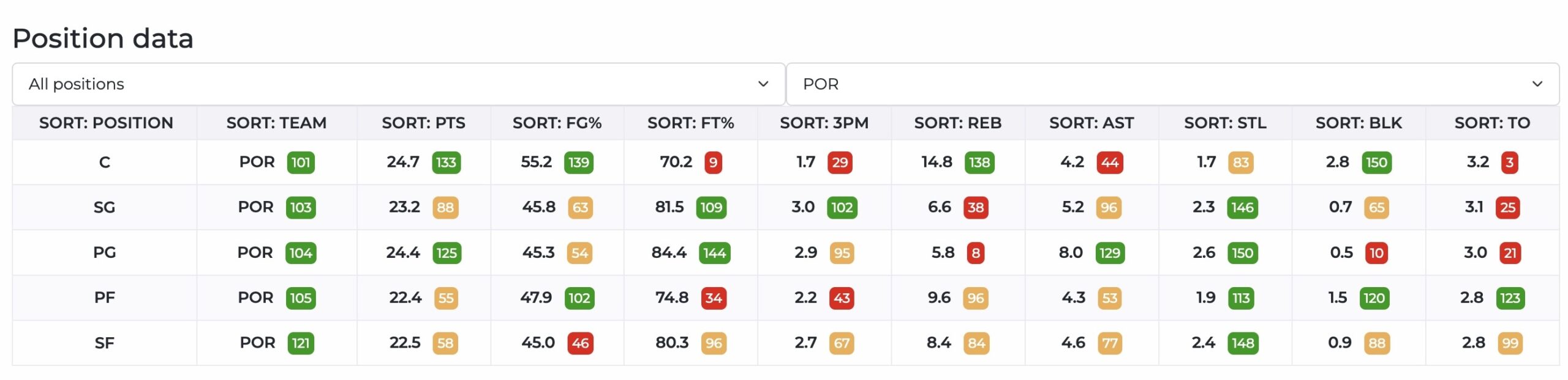 While I could estimate, based on the full panel of “green” on the left side, that I could pick just any player opposing Portland.